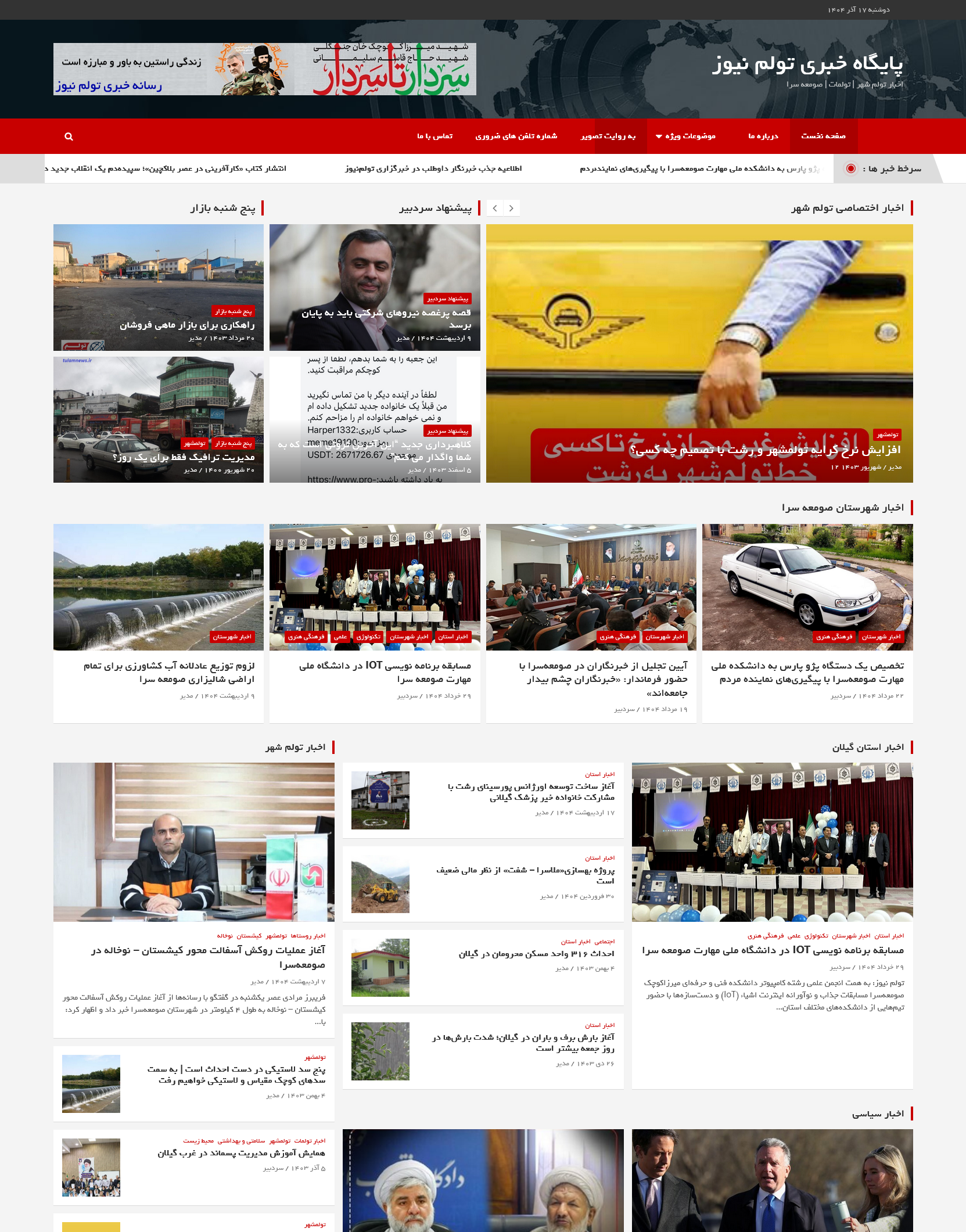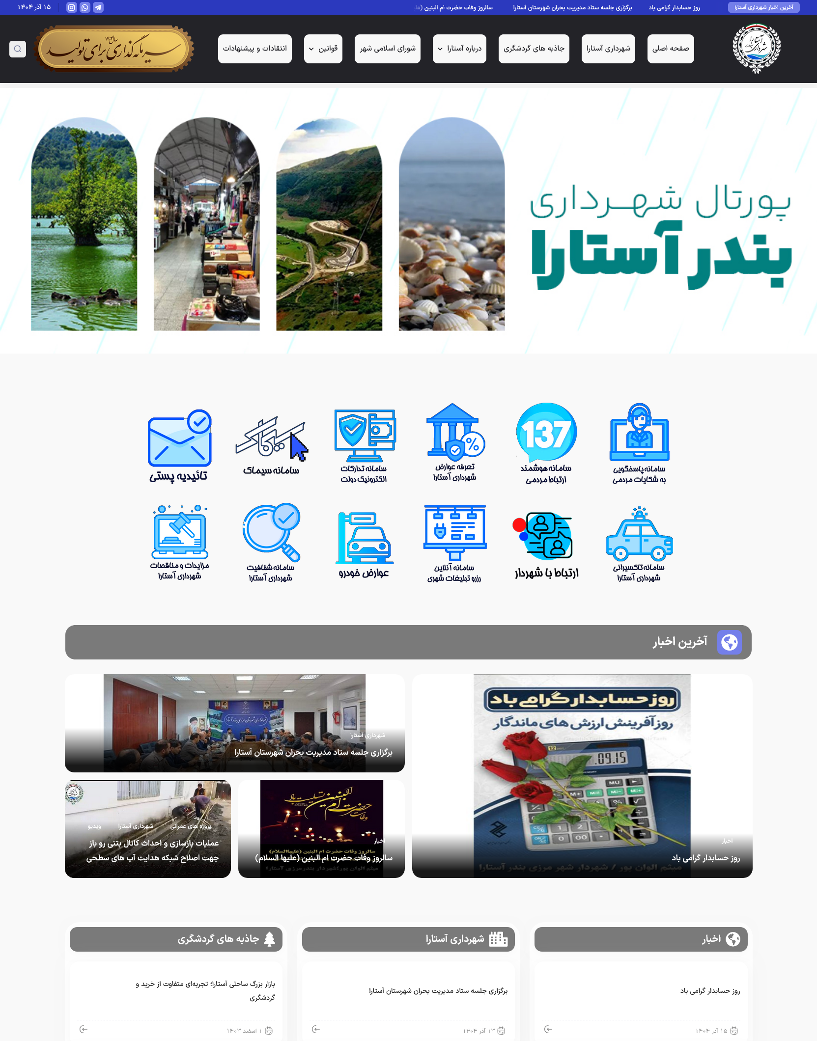 نمونه کار های شرکت های سرور انتخاب از شما پیاده سازی، اجرا و پشتیبانی از ما شهرداری آستارا Astara.ir شهرداری ماسوله ShahrdariMasuleh.ir شهرداری صومعه سرا SomehSara.ir موتور جستجو کالا اوکی یاب OKyab.com اجلاس استاندارن خزر CaspianEvent.ir فروشگاه فنآوران FanKala.com دبیرستان غیردولتی پسرانه آینده رشت Ayandeh94.ir میراث فرهنگی، گردشگری و صنایع دستی شهرستان صومعه سرا Sowmeichto.ir شرکت نوآوران پردازش فرزین آکو های سرور تولم نیوز TulamNews.ir